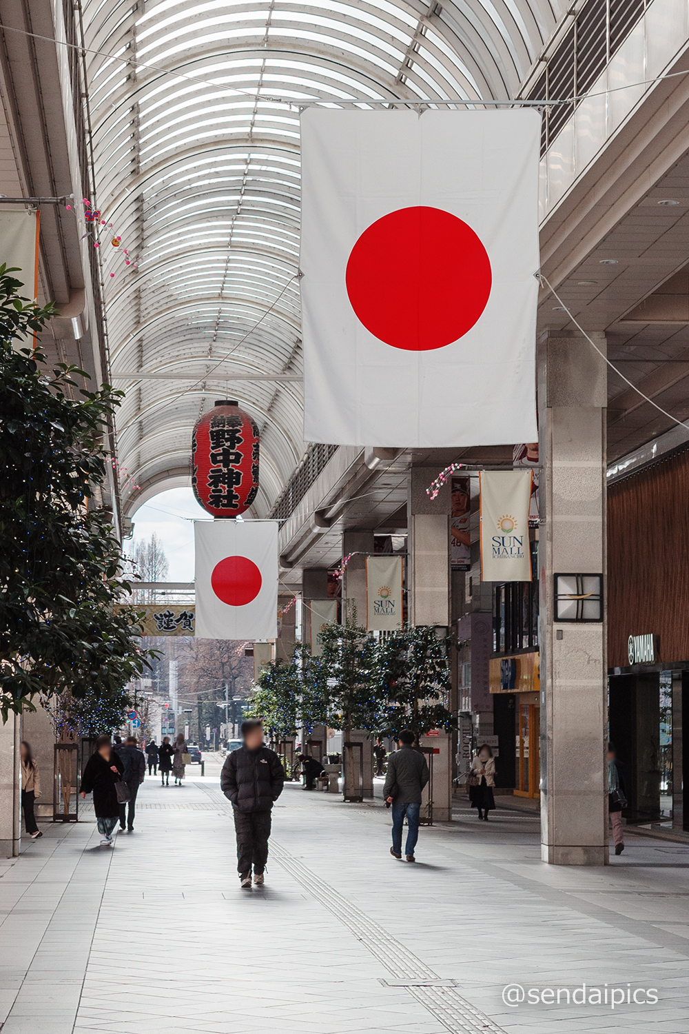 サンモール一番町では毎年、新年を祝う日の丸が飾られています。