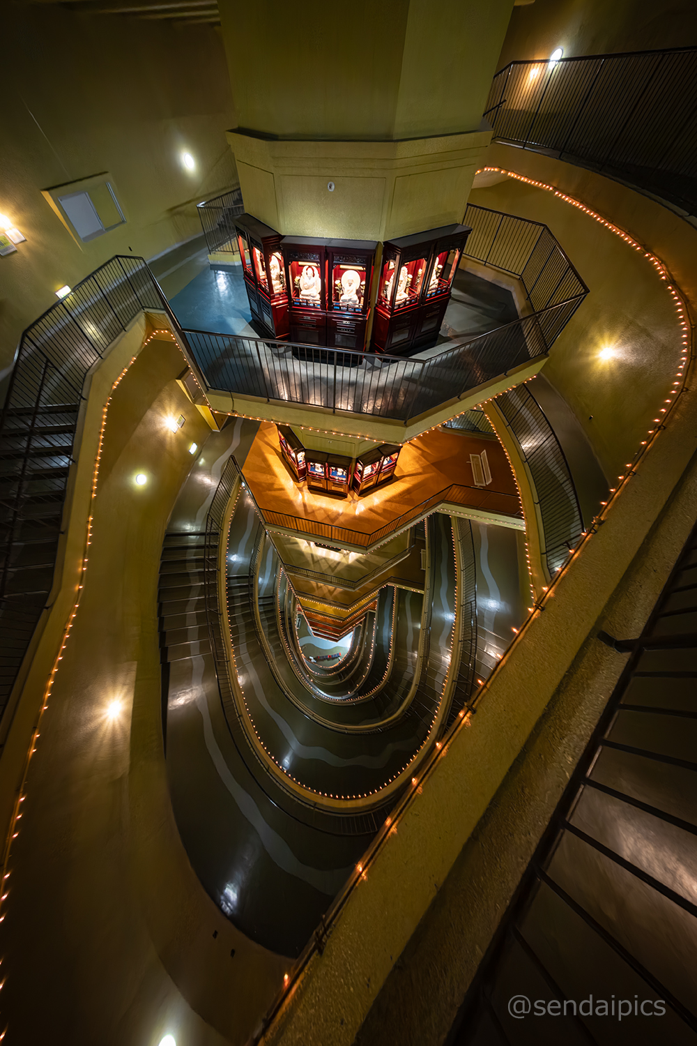 仙台大観音の内部の巨大な吹き抜け空間は、外と大差ないくらいに冷え込んでいて、写真を何枚か撮影していたら手が冷たくなってしまいました。
